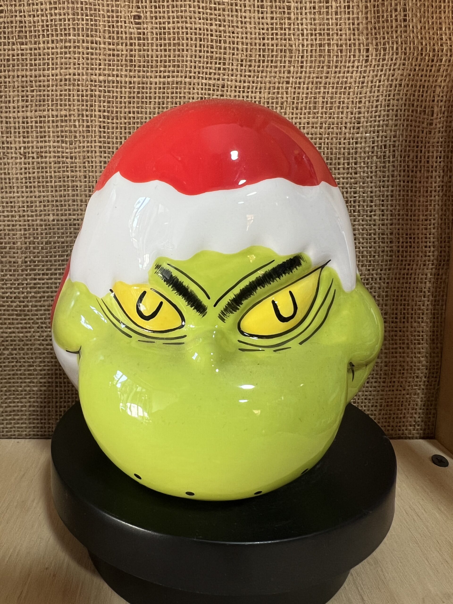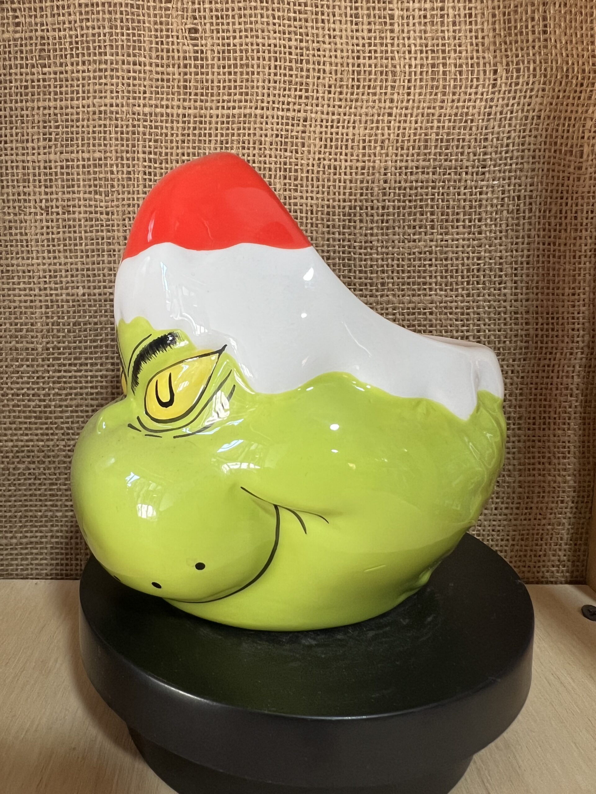 La taza decorativa del Grinch de Navidad es un artículo ideal para ambientar espacios durante las fiestas. Con un diseño navideño inspirado en el famoso Grinch, esta taza destaca por su estilo decorativo y carácter coleccionable. Perfecta para vitrinas, repisas o como regalo original de Navidad. Producto original importado, no réplica.
